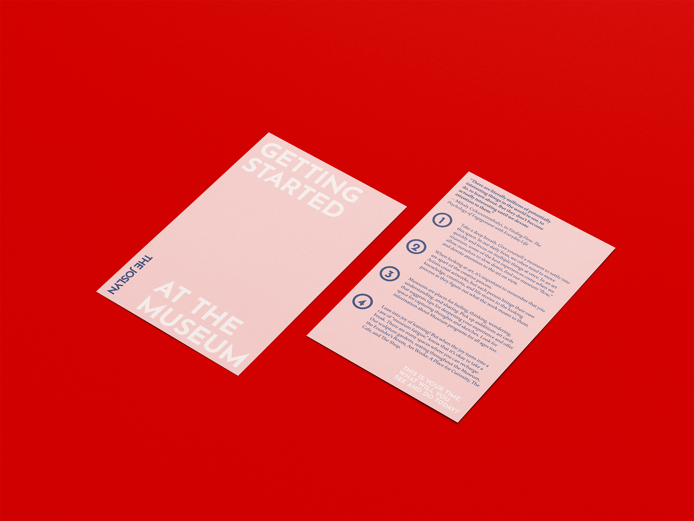 Single-page handouts to be available for visitors. They include additional information or suggestions for visitors who want a more guided path during their trip. They come in a variety of different texts, and are available for all ages.